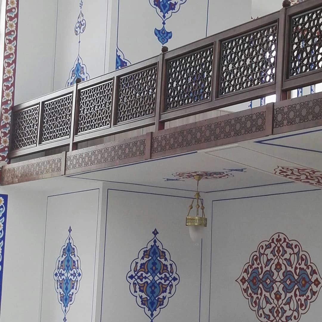 Müezzin mahfili üretimlerinde, caminin genel mimari dokusuna uyum ve yapısal statik dayanıklılık esas alınmaktadır. Muratoğlu Ahşap olarak üretimlerimizde; deformasyonu önlemek adına nem oranı dengelenmiş ceviz, maun ve limba gibi yüksek mukavemetli ağaç türlerini tercih ediyoruz. Üretim aşamasında, geleneksel el oyması zanaatkarlığı ile ileri teknoloji CNC işleme teknikleri bir arada kullanılmaktadır. Her bir mahfil projesi; korkuluk yükseklik standartları, taşıyıcı sistem analizleri ve akustik gereklilikler gözetilerek titizlikle imal edilir. Yüzey işlemlerinde kullanılan koruyucu katmanlar, ahşabın doğal nefes alma özelliğini bozmadan uzun ömürlü kullanım sağlamaktadır.